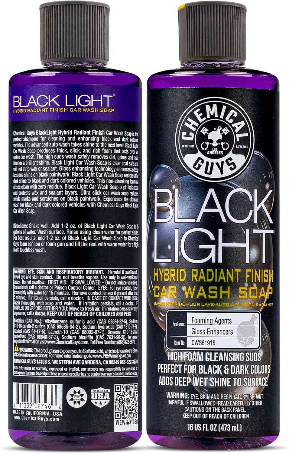 imageChemical Guys Black Light Hybrid Radiant Finish Car Wash Soap and Superior Surface Cleanser 2 Pack 2 X 16 Fl Oz  Gloss Enhancing pH Balanced Formula for Maximum Shine