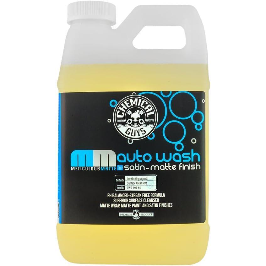 Meticulous Matte Auto Wash cleans and protects matte paint finishes and vinyl wraps. Matte finishes are loved for their crisp cool look and bold showcase of the vehicle's lines, but they pose special detailing challenges. Normal soaps, detail sprays, and waxes enhance unwanted shine on matte and satin finishes. Matte paints are especially sensitive to contamination from pollution, water spots, dirt, dust, bird droppings, and insects. Meticulous Matte Auto Wash is the first matte-safe car wash soap formulated for any two-bucket, foam gun, and foam cannon wash. Meticulous Matte provides slick lubrication to remove abrasive dirt, dust, and road grime without scratching sensitive matte paint finishes. Meticulous Matte contains no gloss enhancers and no wax that would add unwanted gloss and shine.