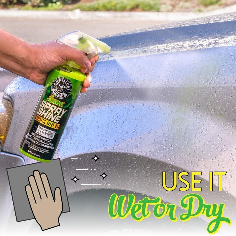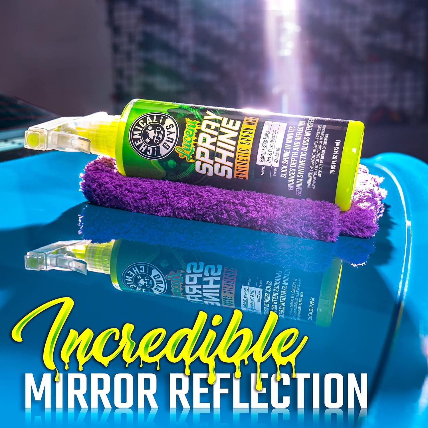 Lucent Spray Shine Synthetic Spray Wax is an easy to use 100% synthetic super polymer spray wax that rapidly delivers an extreme streak-free shine and slickness to all glossy painted surfaces, glass, metal, chrome, and wheels!