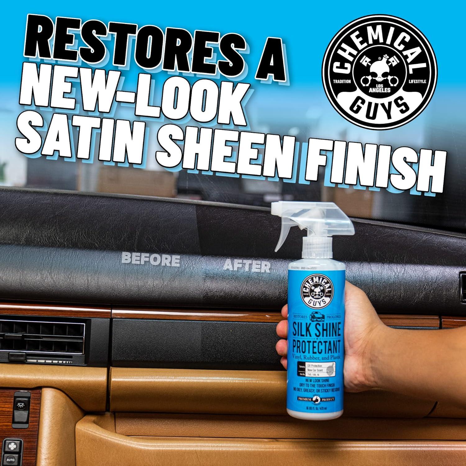 - Silk Shine delivers a durable high-shine finish to rubber, vinyl, black plastics, tires, dashboards, and even leather.