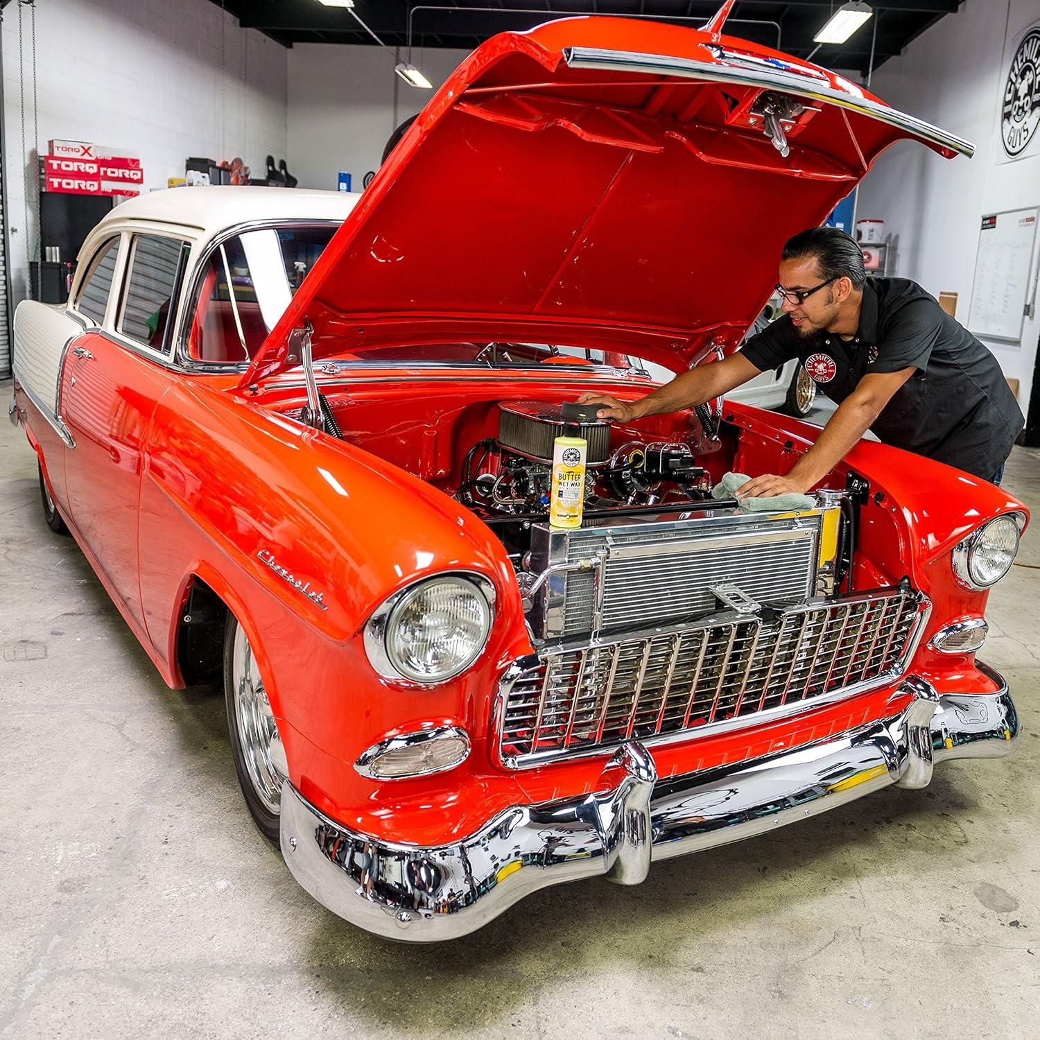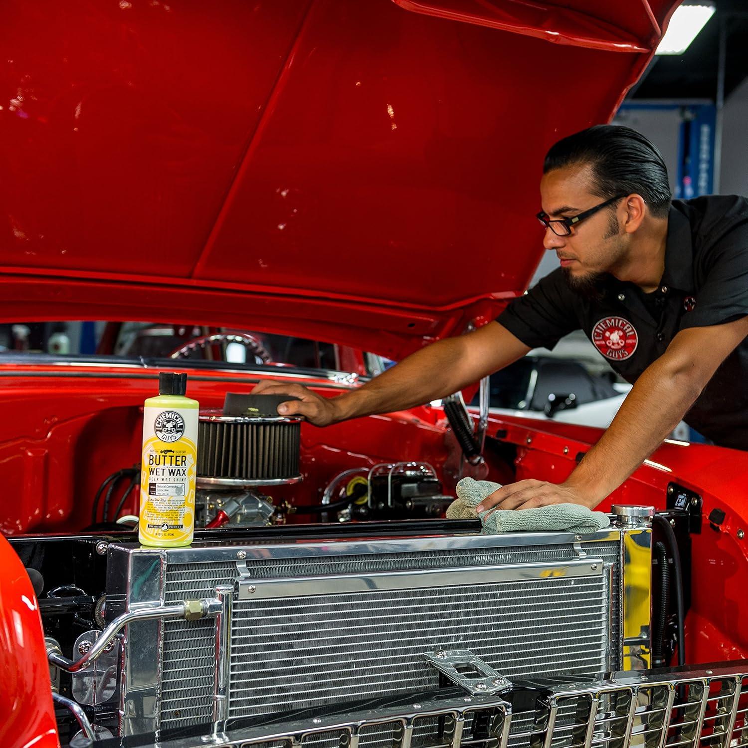 You asked for a better Butter wet wax and Chemical Guys has delivered. Chemical Guys Butter wet wax is formulated to deliver an Unmatched surface shine and deep wet look. Butter wet wax goes on easier, shines brighter and lasts longer than previous generations. This improved blend of natural carnauba, polymers, and resins leaves your car shining as if it were just washed Chemical Guys Butter wet wax enables you to attain the deep gloss of a paste wax in an easy on, easy off, long lasting blend. Butter wet wax is now even easier to use giving that amazing shine only our ultra refined, 100% carnauba based wax can provide. We named this wax after its trademark characteristic; it simply melts into any paintwork like Butter. Chemical Guys Butter wet wax is simply stunning. Professionals and enthusiasts alike All around the world choose Chemical Guys Butter wet wax for its easy-to-use capabilities, extremely durable protection, and show winning shine that will look astonishing on most non-textured surfaces including, painted wheels, chrome bumpers, glasswork/ windshields and stainless steel exhaust tips. Chemical Guys uses our All new signature, ultra-refined, carnauba formula creating a wax that utilizes the natural cleaning powers of carnauba to gently cleanse the paint, exposing the natural beauty of your vehicle's color, while also providing a protective coating that will Fight out the harsh effects of the elements. The smooth, protective layer is 100% natural to Fight off water spots, bird droppings and road tar. The new improved formula of Butter wet wax is even more guarded against the suns harmful UVA and UVB rays. Your vehicle needs the best protection to Fight off the harmful effects of driving. When you desire a deep wet shine with amazing protection, the easy on, easy off Butter wet wax will bring your vehicle's paintwork to life.